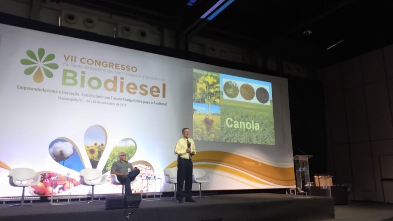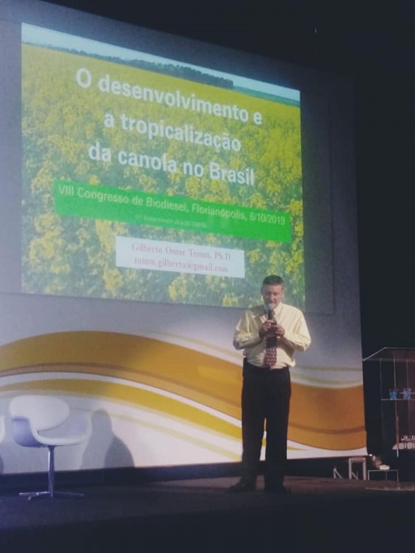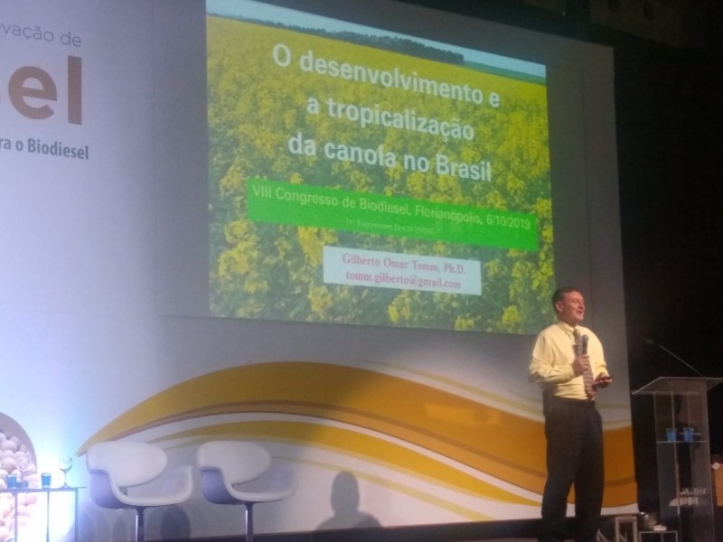 ABRASCANOLA participou do VII Congresso da Rede Brasileira de Tecnologia e Inovação de Biodiesel, realizado em Florianópolis, SC, de 4 a 7 de novembro de 2019. Foi representada pelo associado Gilberto Omar Tomm, que palestrou sobre "O desenvolvimento e a tropicalização da canola no Brasil" e apresentou o pôster sobre as "Áreas de maior potencial para a expansão da produção de canola no Brasil". O pesquisador, especialista em canola, descreveu o evento "como uma ótima oportunidade para expor as vantagens e a qualidade do óleo de canola, difundir tecnologias, conhecimento, experiências e a oportunidade do Brasil se tornar um grande produtor de canola. Foi uma enorme satisfação encontrar pesquisadores, professores e estudantes que realizam pesquisas com canola em universidades de diversas regiões do Brasil."
